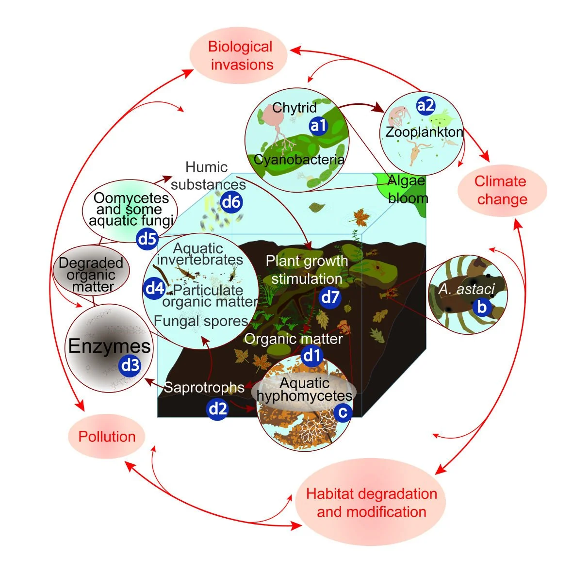 A new AFL publication highlights the importance of aquatic fungi. They are always there, dwelling in the water, where they play a key role in food webs, in cycling of nutrients, matter and energy, and water purification. However, as happens with organisms that tend to be inconspicuous and often invisible to the naked eye, society mostly neglects them, and forgets their huge importance in providing support and stability of aquatic ecosystems. What is even more problematic, we also forget that they are exposed to a wide range of threats from human activities. Without proper conservation measures, their populations can decline and go extinct just like all of the other, more conspicuous aquatic organisms, with unforeseen consequences for marine and freshwater ecosystems. This was the object of a study by an international team led by researchers from the Biology Centre of the Czech Academy of Sciences, as well as from the Leibniz Institute of Freshwater Ecology and Inland Fisheries (IGB) in Germany, and the University of Coimbra in Portugal.